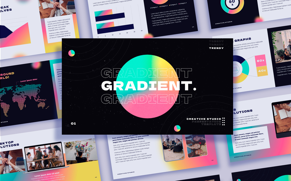 This is a colorful and trendy presentation template designed to fit your creative studio needs, wether you’re a start-up or you’ve been in the business for years, this is the template for you. It is easy to use, with different drag and drop layouts that can adjust to your message, you can create a strong deck with a compelling story.